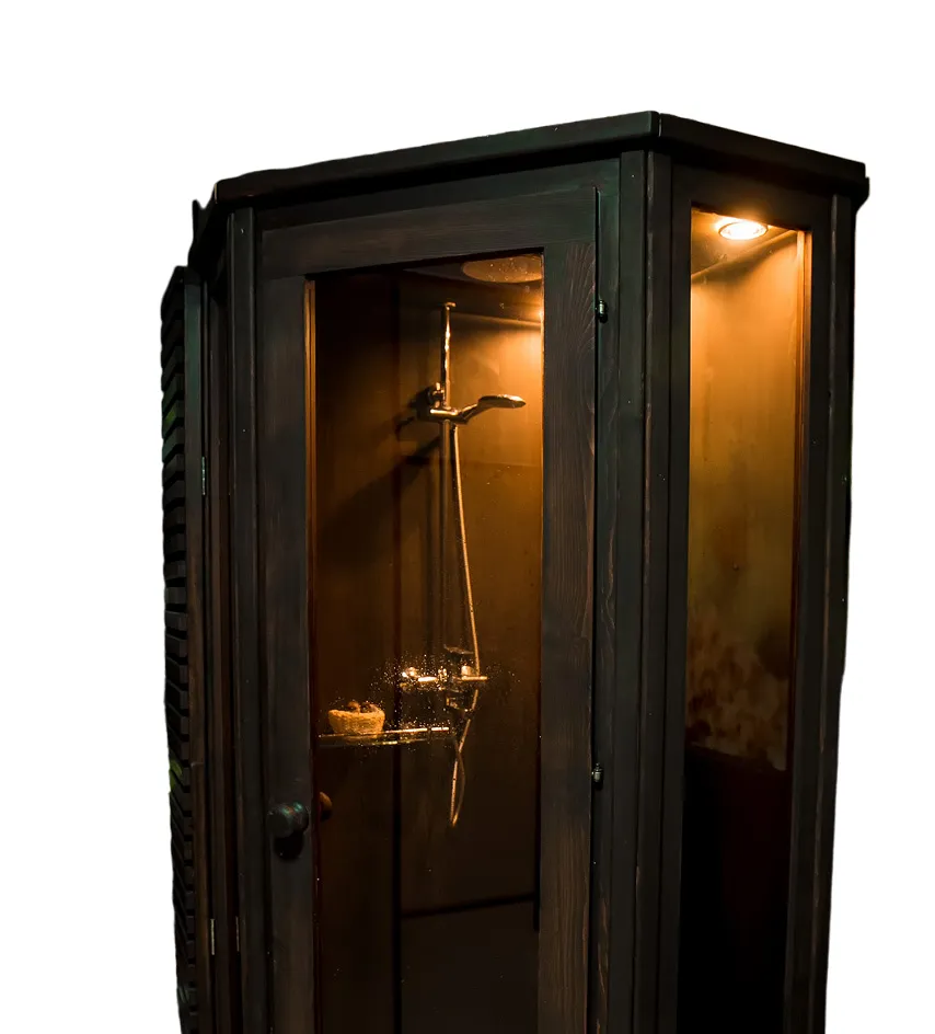 Древесина кедра богата эфирными маслами, которые при воздействии температур испаряются в воздух, что благотворно воздействует на организм во время принятия душа.