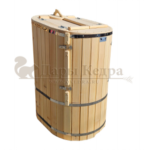 Бондарная фитобочка имеет такое название, потому что выполнена по старинной технологии в шип-паз, без использования каких-либо иных дополнительных скрепляющих элементов. Производственное оборудования позволило для круглых бочек применить лунный паз глубиной 2.5 см, который имеет надежное прилегание досок друг к другу, скрепляя бочку плотно, не пропуская пар и имеет вид фаски. Кедровая Фитобочка - это мини парная, которую можно установить в квартире и каждый день использовать в домашних условиях. Настоящая лечебница для здоровья всей семьи. Во время парения человек сидит внутри кедровой бочки, а голова находится снаружи. Благодаря этому исключается перегрев и процедура парения комфортно переносится пожилыми людьми и детьми.