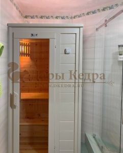 Финская сауна с электрокаменкой представляет собой компактную парную кабину, изготовленную из целебной древесины сибирского кедра. Финская