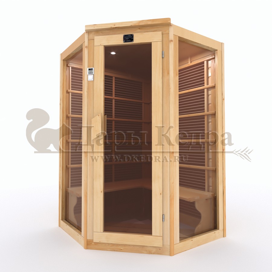 • Двухместная угловая инфракрасная сауна кабина из кедра с керамическими излучателями Это специально оборудованная кедровая кабина для прогрева тела человека сухим теплом. Воздух в таких парных не нагревается. Инфракрасные лучи воздействуют на тело, равномерно прогревая мышцы, суставы и органы. Керамические излучатели похожи на лампы, имеют высокую температуру нагрева, поэтому защищены противоожоговыми решетками. Тело человека в таких саунах нагревается интенсивнее. Работает кабина за счет электричества. Установка сауны в угол, позволяет рационально использовать пространство помещения. Подходит как для домашнего использования, так и для коммерции. Обращаем Ваше внимание что в стандартную комплектацию входит трапик для ног, но вы можете его заменить на цельный пол совершенно бесплатно! Целебная древесина кедра и инфракрасные лучи благотворно влияют на организм человека в целом. При регулярном использовании инфракрасной сауны укрепляется иммунитет, улучшается кровообращение и состояние кожи, выводятся токсины.