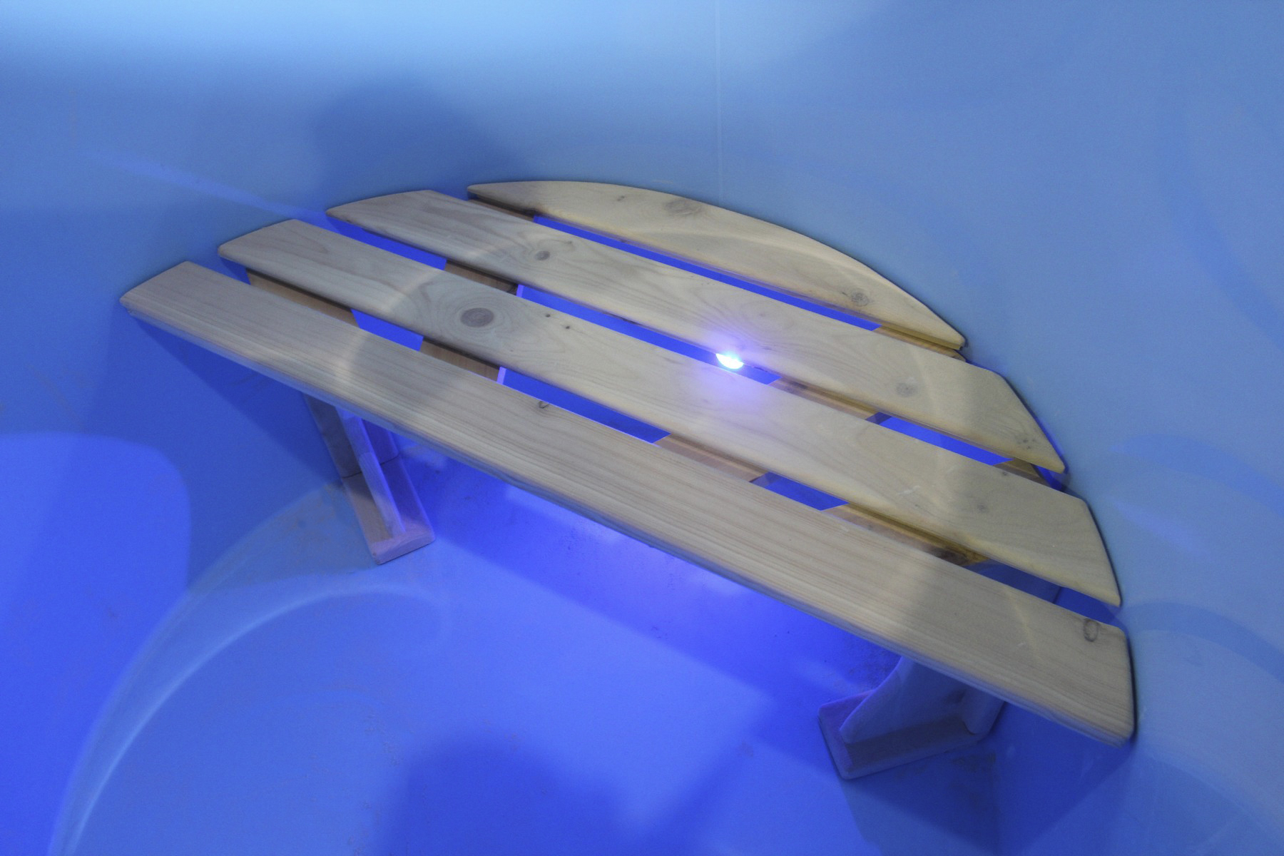 Это уличная подогреваемая купель с круглой внутренней чашей из термопластика, которая имеет цельную форму вместе с сиденьями и дном. Для удобства пользования купель фурако оборудована приставной лестницей. Подогрев воды осуществляется за счет внешней печи с дымоходом. Термопластик устойчив к воздействию температур, облегчает уход за фурако и увеличивает срок ее службы.
