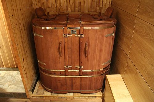 Вот такая купель стоит в семейном отеле. За счет пластиковой вставки легко мыть после большого потока клиентов. Пользуемся давно, поэтому на качество проверили!